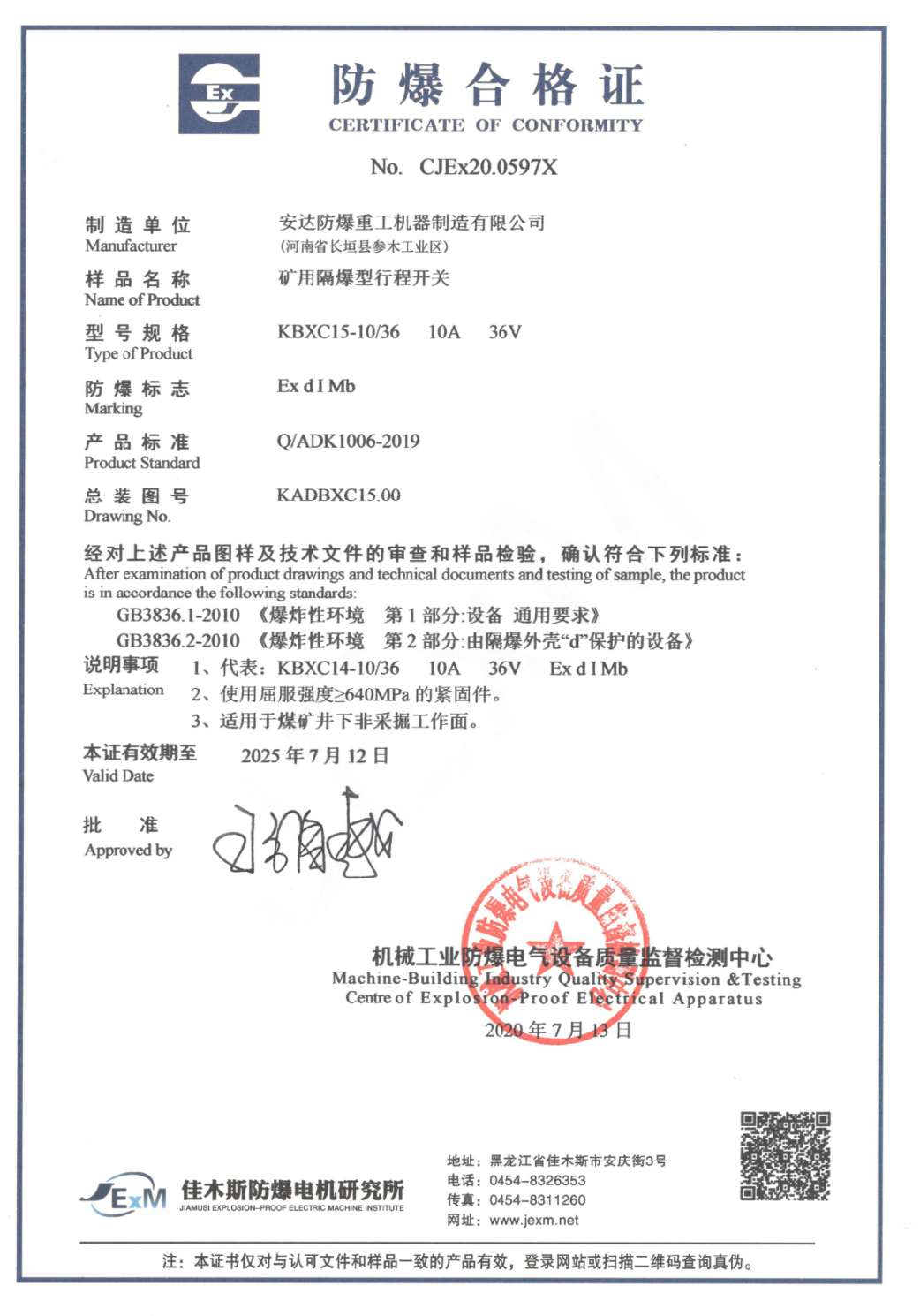 » 礦用防爆型行程開關(guān) 防爆合格證
