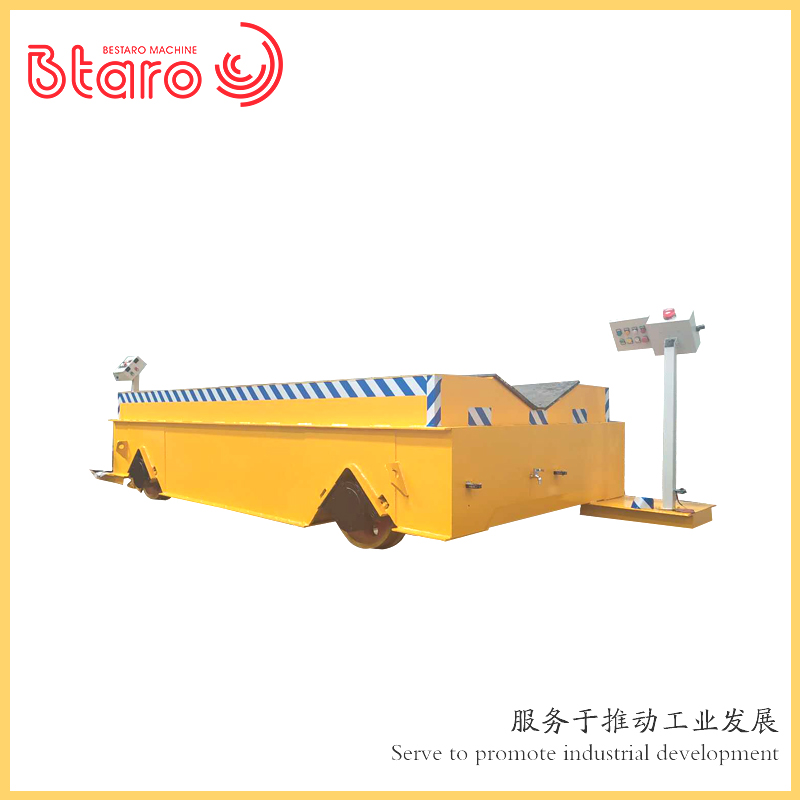 安陽電動平車生產供應商—百達力歐公司制造,電動平車,又稱電動平板車、電平車、臺車、過跨車、電動軌道車、地爬車等,是一種廠內有軌電動運輸車輛,首先它是一種軌道型運輸車輛,需要在地面上鋪設軌道,軌道一般為工字型面接觸道軌;其次它是電驅動車輛,在電機減速機驅動下自動運行,再次它是一種平板車,臺面平整無廂蓋,特殊情況下也可以是非平面但無廂蓋,車體無方向盤只有前進后退方向(即使轉彎也城靠軌道轉彎)。此種車輛具有結構簡單、使用方便、承載能力大、不怕臟不怕砸、維護容易、使用壽命長等特點,因其方便、壯實、經濟、實用、易清理等諸多優點,成為企業廠房內部及廠房與廠房之間短距離定點頻繁運載重物的常用運輸工具。