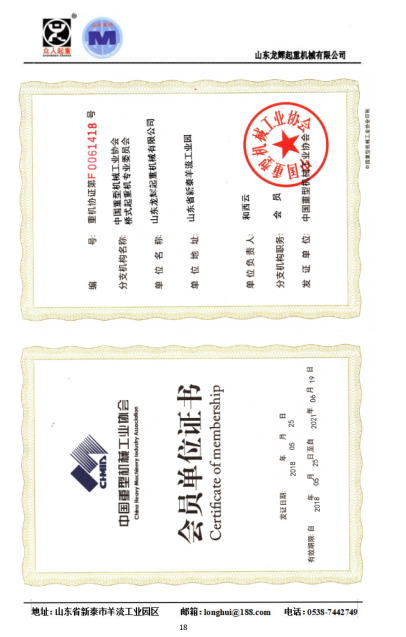 | 發(fā)證機(jī)構(gòu): | 中國重型機(jī)械工業(yè)協(xié)會 | 發(fā)證時間 : | 2018-05-25 |