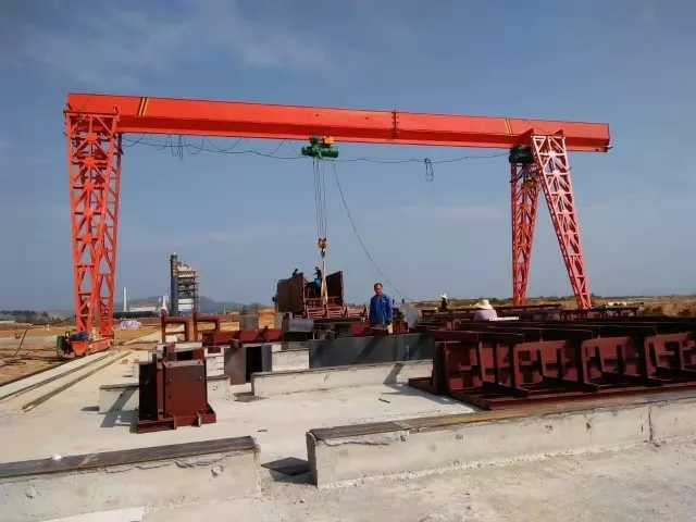 它的金屬結(jié)構(gòu)像門(mén)形框架,承載主梁下安裝兩條支腳,可以直接在地面的軌道上行走,主梁兩端可以具有外伸懸臂梁。