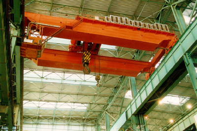 橋式起重機是橫架于車間、倉庫和料場上空進行物料吊運的起重設備。由于它的兩端坐落在高大的水泥柱或者金屬支架上,形狀似橋。橋式起重機的橋架沿鋪設在兩側高架上的軌道縱向運行,可以充分利用橋架下面的空間吊運物料,不受地面設備的阻礙。它是使用范圍**廣、數量**多的一種起重機械。橋架在高架軌道上運行的一種橋架型起重機,又稱天車。橋式起重機的橋架沿鋪設在兩側高架上的軌道縱向運行,起重小車沿鋪設在橋架上的軌道橫向運行,構成一矩形的工作范圍,**可以充分利用橋架下面的空間吊運物料,不受地面設備的阻礙。這種起重機廣泛用在室內外倉庫、廠房、碼頭和露天貯料場等處。
