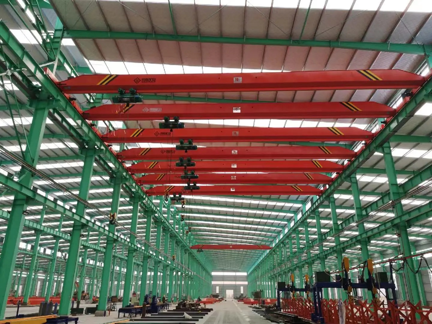 本公司主要生產產品有:(1)起重機類: 天車/天吊/行吊/行車、單梁起重機、雙梁起重機、電動葫蘆雙梁起重機、 門式起重機 、半門式起重機、懸臂起重機、壁栓式懸臂起重機、旋臂起重機、LX懸掛起重機、LH葫蘆雙梁起重機、花架門式起重機、雙梁抓斗起重機、QD吊鉤橋式起重機、QD冶金鑄造起重機、QE雙小車吊鉤橋式起重機、MH單主梁葫蘆門式起重機、MG雙橋吊鉤門式起重機、L單主梁門式起重機、升降平臺類非標起重機的制造、改造、安裝、維修、保養等。 二、配套件類:各類國產進口電動(手動)葫蘆、防爆電動葫蘆、冶金電動葫蘆.雙制動電動葫蘆、雙速電動葫蘆、環鏈電動葫蘆、微型電動葫蘆、手拉葫蘆、單軌小車、電磁(永磁)吸盤、電纜卷筒、電動小車、電控柜、卷揚機、空壓機、電動機、減速機、液壓制動器、聯軸器、變頻器、控制器、遙控器、保護器、電阻器、緩沖器、安全滑線、電線電纜、抓斗抓具、吊具索具夾具、吊帶、吊鉤、起重鏈條.車輪組、公司有專業維修人員為客戶;維修,安裝,調試,檢修保養等業務。
