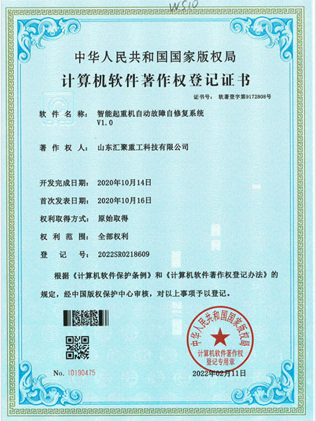 智能起重機自動故障自修復系統 V1.0(自動化證書)