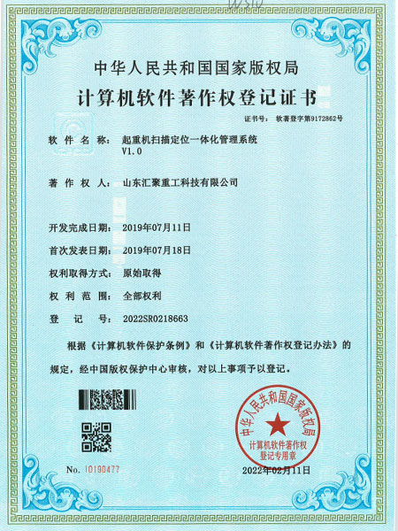 » 起重機掃描定位一體化管理系統 V1.0(自動化證書)