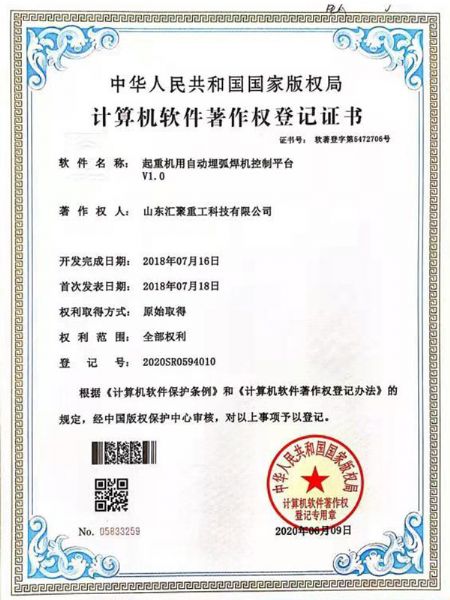 榮譽(yù)資質(zhì) 起重機(jī)用自動(dòng)埋弧焊機(jī)控制平臺(tái) V1.0