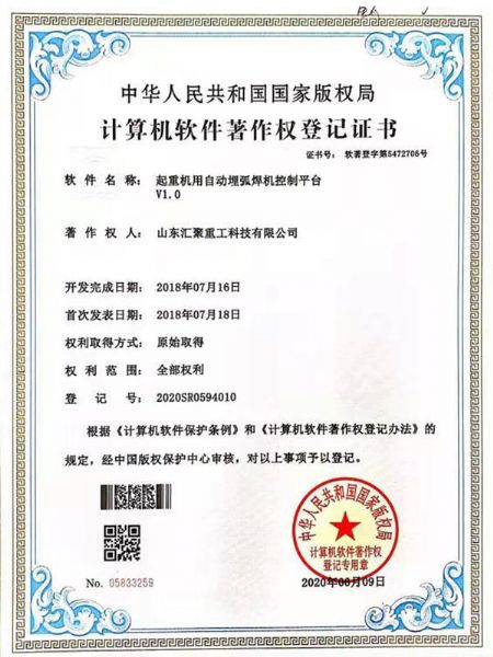 榮譽(yù)資質(zhì) 起重機(jī)用自動(dòng)埋弧焊機(jī)控制平臺(tái) V1.0