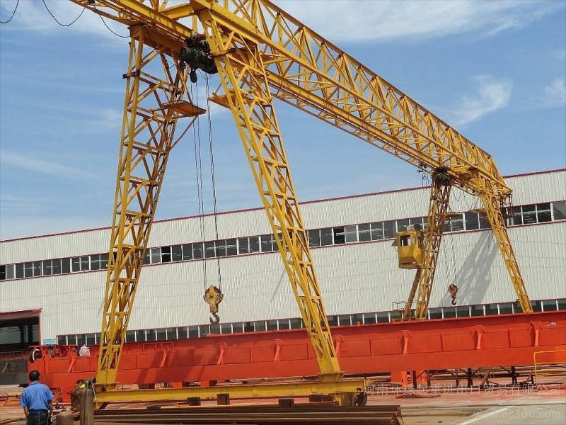 門式起重機是橋式起重機的一種變形,又叫龍門吊。主要用于室外的貨場、料場貨、散貨的裝卸作業。門式起重機具有場地利用率高、作業范圍大、適應面廣、通用性強等特點,在港口貨場得到廣泛使用。