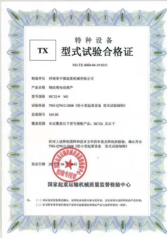 | 發(fā)證機(jī)構(gòu): | 國(guó)家起重運(yùn)輸機(jī)械質(zhì)量監(jiān)督檢驗(yàn)中心 | 發(fā)證時(shí)間 : | 2019-04-30 |