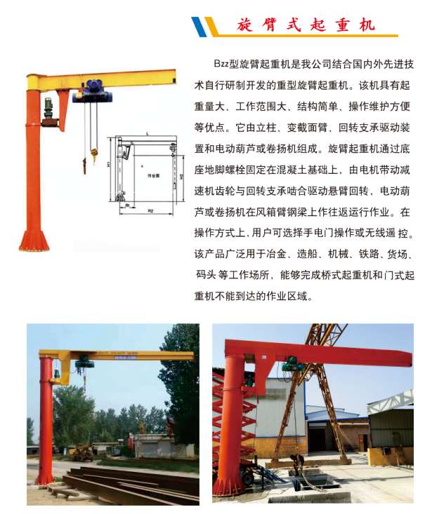 術自行研制開發(fā)的重型旋臂起重機。該機具有起