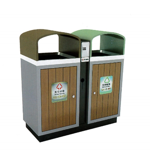 » 河南天祥 鋼木二分類垃圾桶戶外果皮箱 (小區/公園/景區)