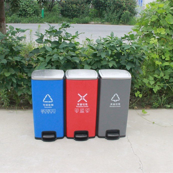 » 河南天祥 鍍鋅室內三分類腳踏環保垃圾桶 支持定做 廠家直銷