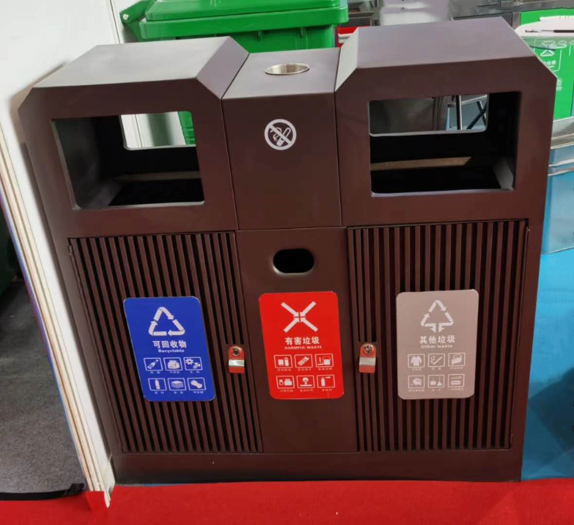 鋼制垃圾桶材料為冷軋鋼板或鍍鋅鋼板。適用范圍廣,使用壽命長,表面經過噴塑和酸處理。防腐蝕性能更高,易保潔,表面光滑,不脫落,不起層。具有、防潮、防蛀、耐高溫易清洗的特點。