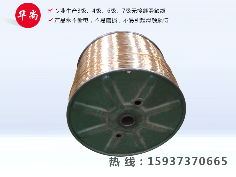 河南省華尚滑導電器有限公司是無接縫滑觸線專業生產公司,3級、4級、6級、7級無接縫滑觸線,具有永不斷電,以無氧銅輸送電源,壓降力,導電率倍佳,接觸性好、安裝方便、不易磨損、更換方便、運輸更方便、不易引起滑觸損傷,延長使用壽命。產品工藝先進,做工精細,造型美觀,實屬起重行業系統的理想換代產品,本企業廣泛吸取科技精華,銳意進取,開拓創新,產品已形成系列化,標準化,并且可按用戶要求特殊設計制造。