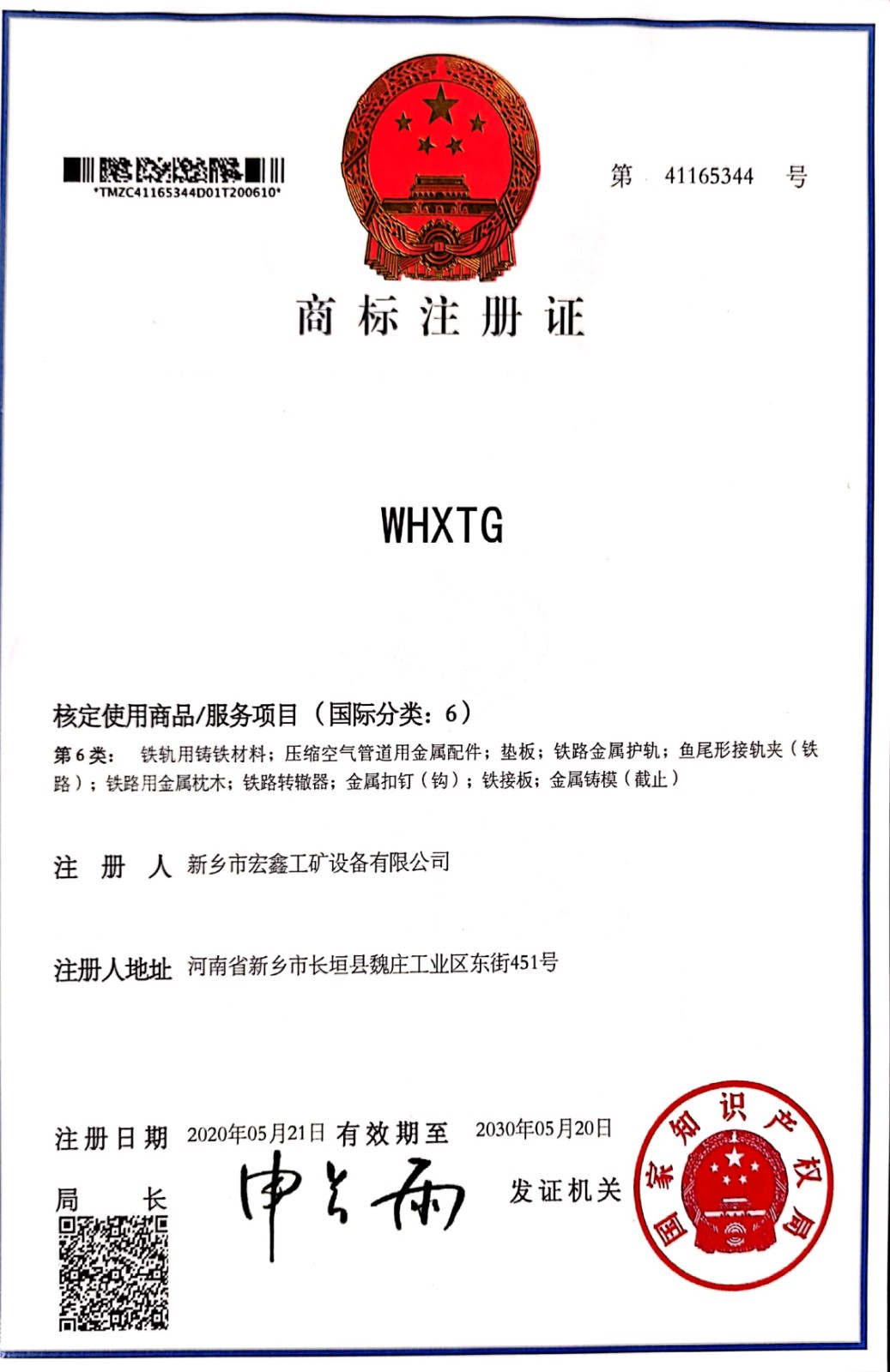 瀏覽次數:259軌道壓板夾板宏鑫工礦商標WHXTG |
