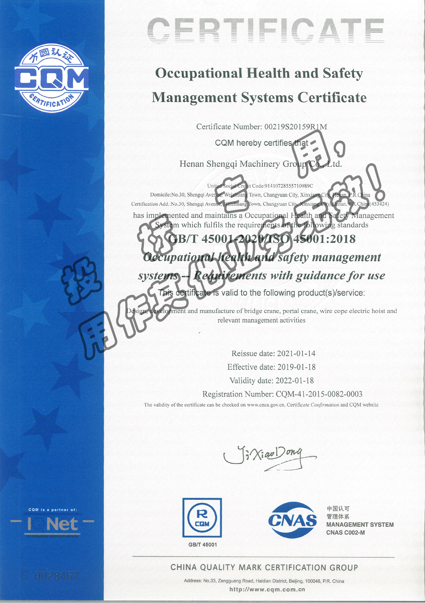 榮譽(yù)資質(zhì) 職業(yè)健康安全管理體系認(rèn)證證書(shū)