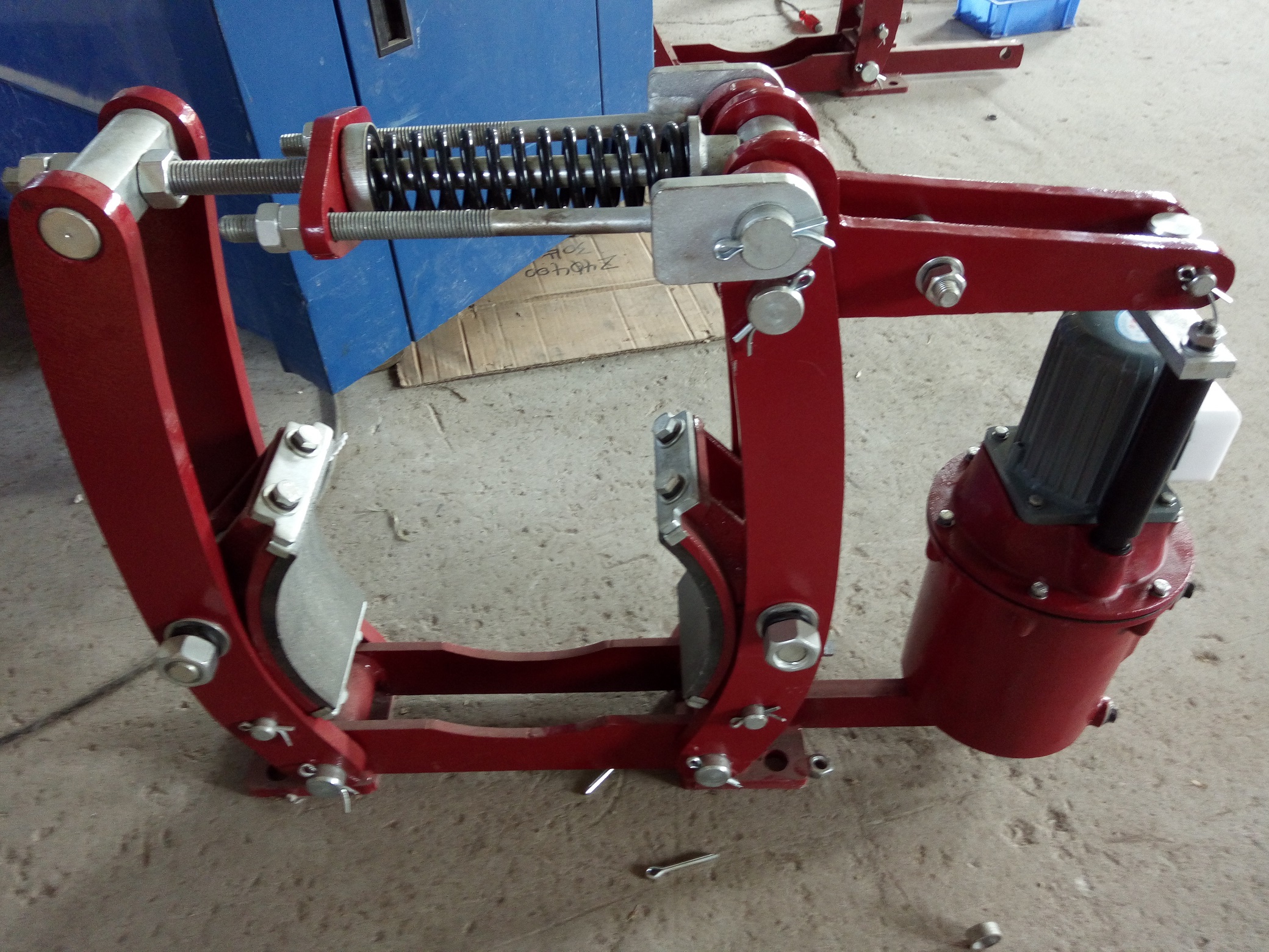 檢查制動(dòng)器在運(yùn)輸或儲(chǔ)存過(guò)程中是否有損壞或缺件;檢查制動(dòng)輪表面是否清潔,若有油污或其它臟物,應(yīng)徹底清除干凈。YWZ系列電力液壓塊式制動(dòng)器,采用MYT1系列推動(dòng)器作為制動(dòng)器的驅(qū)動(dòng)裝置。安裝尺寸符合JB/ZQ4388-86標(biāo)準(zhǔn)。主要用于起重運(yùn)輸、冶金、礦山港口、建筑等機(jī)械驅(qū)動(dòng)裝置的機(jī)械制動(dòng)。氣動(dòng)嵌盤(pán)式制動(dòng)器是一種既具備盤(pán)式制動(dòng)器的優(yōu)點(diǎn),又具有廣泛適應(yīng)性和獨(dú)特優(yōu)越性的先進(jìn)產(chǎn)品。該產(chǎn)品具有結(jié)構(gòu)簡(jiǎn)單,體積小,重量輕可靠性高,以壓縮空氣為動(dòng)力源,使用方便,適用于多中盤(pán)徑,安裝調(diào)試、維護(hù)方便等特點(diǎn)。廣泛使用于冶金、散料裝卸等固定式作業(yè)機(jī)構(gòu)的減速和制動(dòng);