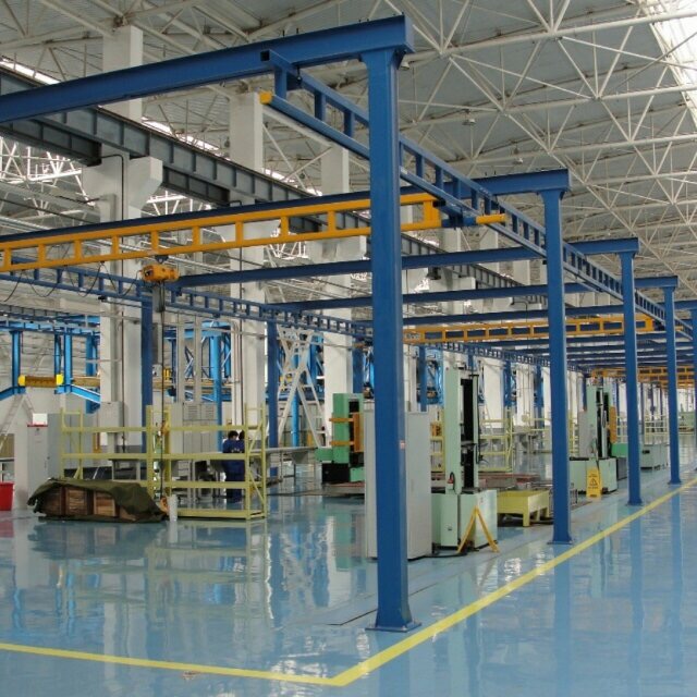 3. 主梁: 剛性主梁同軌道的材質(zhì)、性能、型號和規(guī)格一樣。不同型號的軌道和主梁通過小車和主梁吊夾可組合成承受不同負(fù)載的各種類型的懸掛起重機。根據(jù)需要主梁有單梁、桁架式梁、伸縮梁等不同類型的結(jié)構(gòu)。主梁的跨度為9m,運動形式分手動和電動。