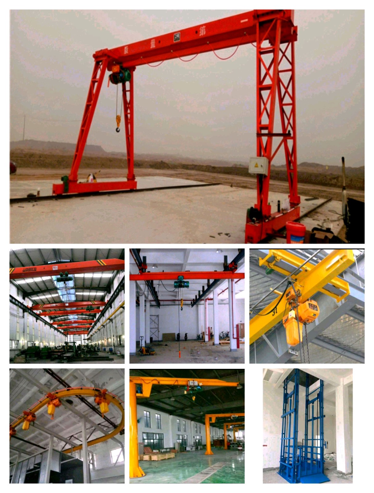 本公司產(chǎn)品品種齊全,質量可靠,價格合理,售后服務周到。還可根據(jù)用戶要求,設計各種非標電動葫蘆和非標起重機。愿本公司的產(chǎn)品,成為貴單位理想的選擇。