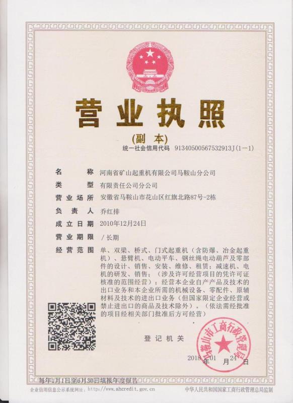 河南省礦山起重機有限公司馬鞍山分公司