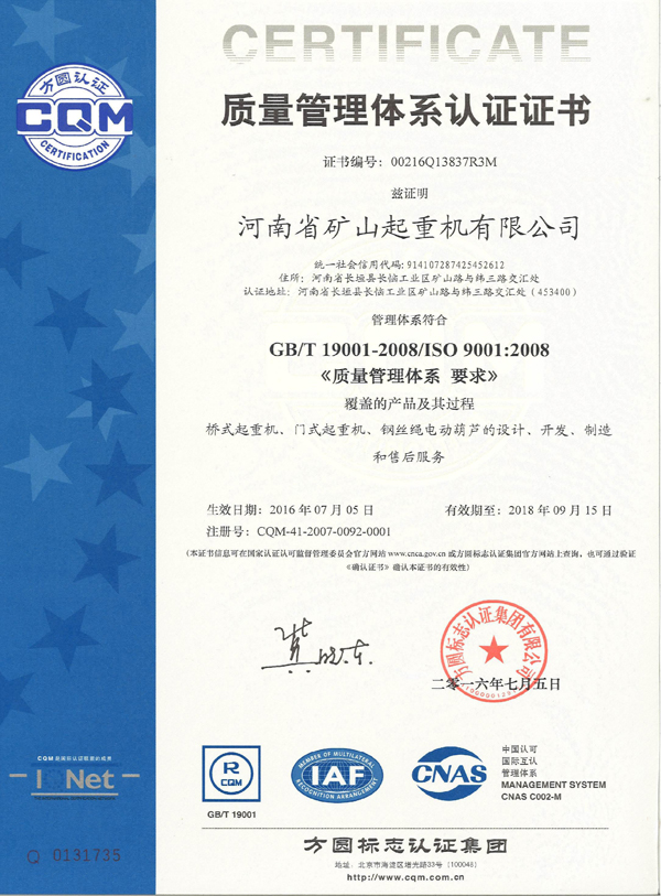 質量管理體系認證證書