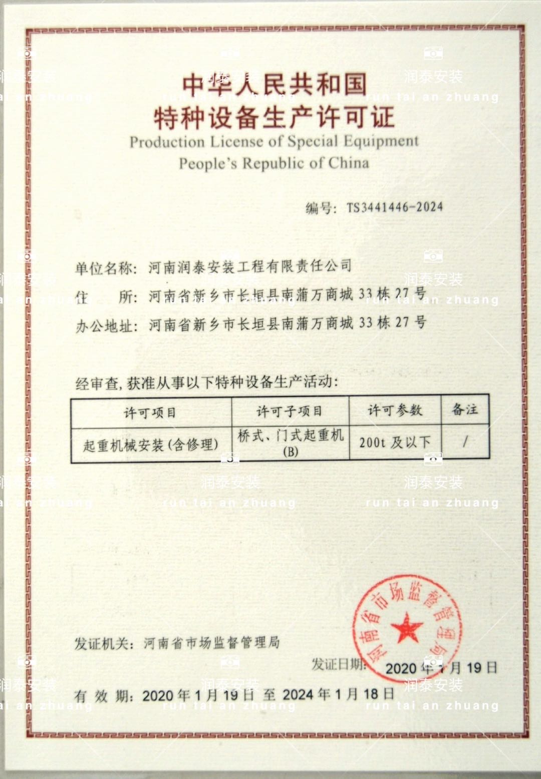 » 中華人民共和國特種設(shè)備生產(chǎn)許可證
