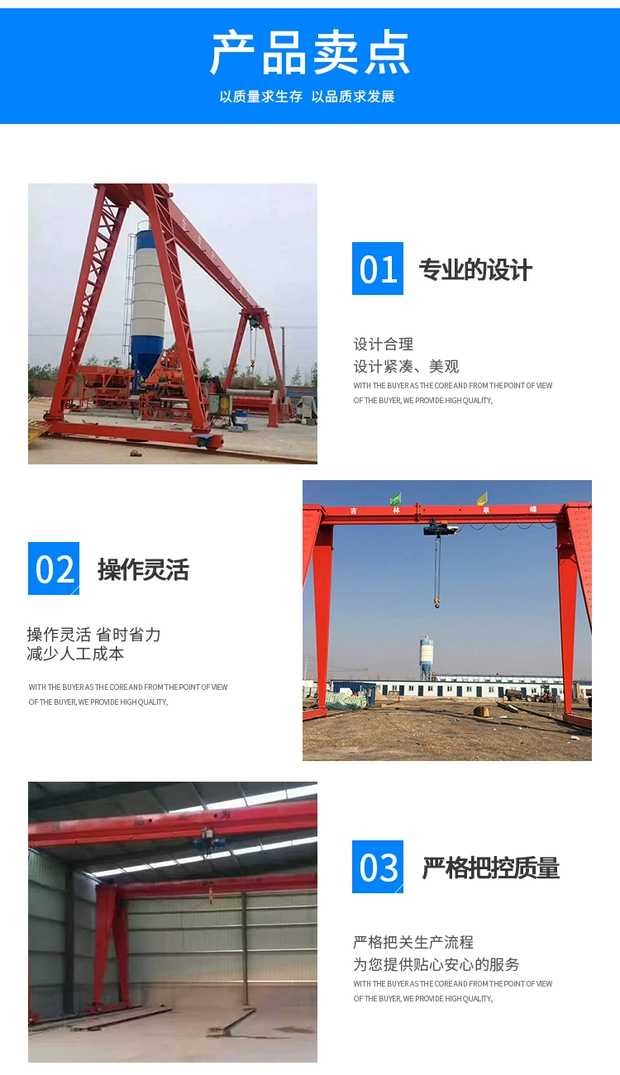 本公司專業銷售、安裝、改造、維修保養各種單、雙梁起重機、電動葫蘆等起重設備,并配備各種型號起重配件,以優惠的價格提供最優質的服務。公司以卓越的品質,良好的形象占領國內外市場,形成了龐大的銷售網絡和客戶群體,在同行業中具有很高的競爭力。