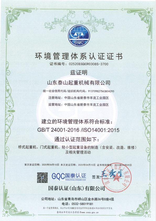 | 發(fā)證機(jī)構(gòu): | 國(guó)泰認(rèn)證(山東)有限公司 | 發(fā)證時(shí)間 : | 2020-04-10 |