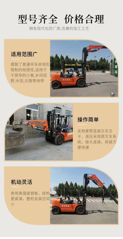 市政工程施工、園林綠化、車站碼頭及野外作業等狹窄或小重物場所,更是個體出租業戶的完美起重設備。