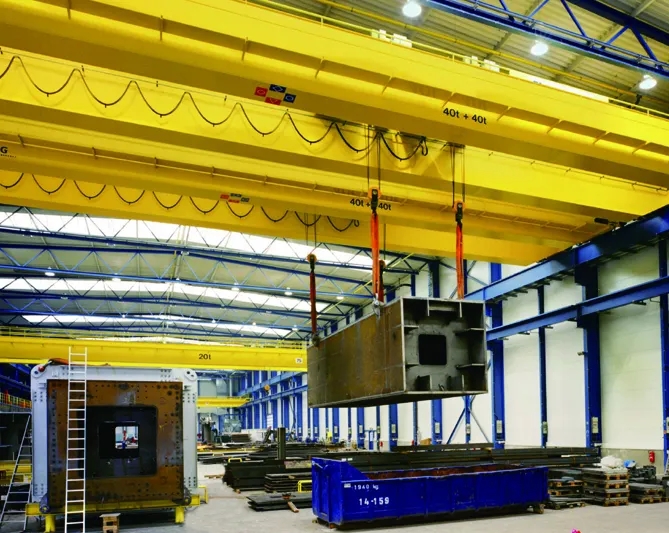 詳細(xì)信息 歐洲橋式起重機(jī),具有自重輕,結(jié)構(gòu)小巧,能耗較低,在橋架上設(shè)置一臺(tái)小車(chē)及起升機(jī)構(gòu),小車(chē)可以前后運(yùn)行,大車(chē)運(yùn)行等機(jī)構(gòu),實(shí)現(xiàn)物料物體在立體空間搬運(yùn),歐式起重機(jī)采用獨(dú)特的設(shè)計(jì)理念,具有尺寸小,重量輕,輪壓小的特點(diǎn)。與傳統(tǒng)起重機(jī)相比,吊鉤至地面(地坪)的極限距離**小,凈空高度**,科力起重機(jī)更能貼近前面作業(yè),起升高度更高,實(shí)際增加了現(xiàn)有廠(chǎng)房的有效工作空間。由于起重機(jī)具有重量輕,輪壓小的特點(diǎn),新廠(chǎng)房空間可以設(shè)計(jì)的更小,功能更齊全。較小的廠(chǎng)房意味著初期建設(shè)**,以及長(zhǎng)期供熱、空調(diào)及其他維護(hù)費(fèi)中可以節(jié)省一筆可觀(guān)的資金。