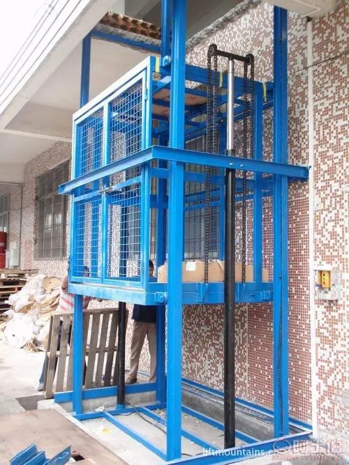導軌式升降梯是一種非剪叉式液壓升降臺.用于二三層工業廠房,餐廳,酒樓樓層間的貨物傳輸.**高度在150-300mm,優其適合不能開挖地坑的工作場所.并且無須上部吊點,形式多樣化(單柱,雙柱,四柱).設備運行平穩,操作簡單可靠,貨物傳輸經濟便捷.