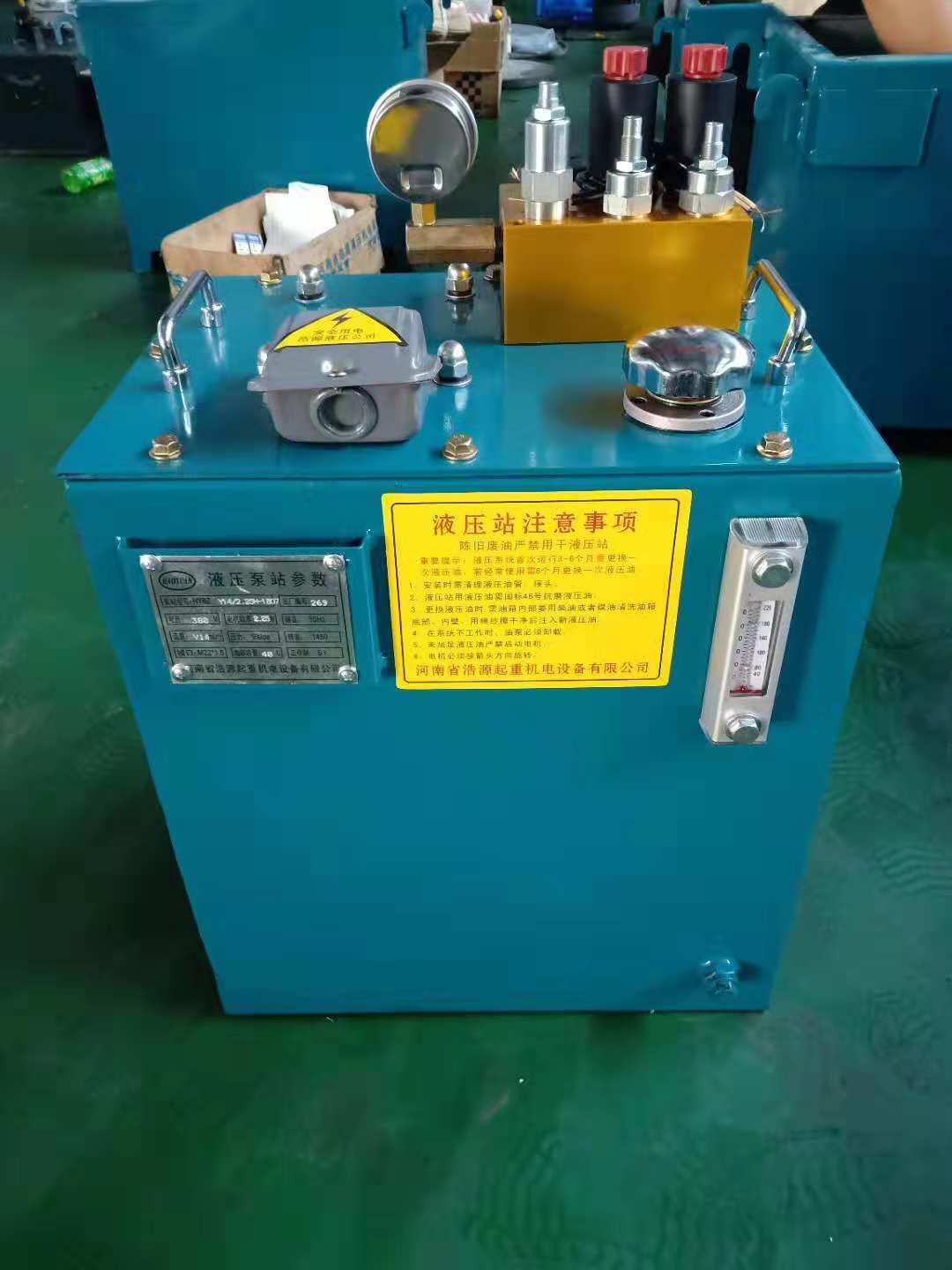 1、液壓泵站用油及工作條件 推薦采用32#和46#抗磨液壓油。最適宜的油溫為30~55℃,當油溫低于15℃或大于60℃時禁止運行,為調節油溫可事先加熱或冷卻。液壓油一般使用1~6個月應更換一次,并清洗油箱,去除污垢塵埃。液壓傳動最忌諱油液變臟變質,否則塵埃糊在吸油過濾器上,產生噪音加劇,使油泵壽命降低,所以要經常保持油液潔凈。