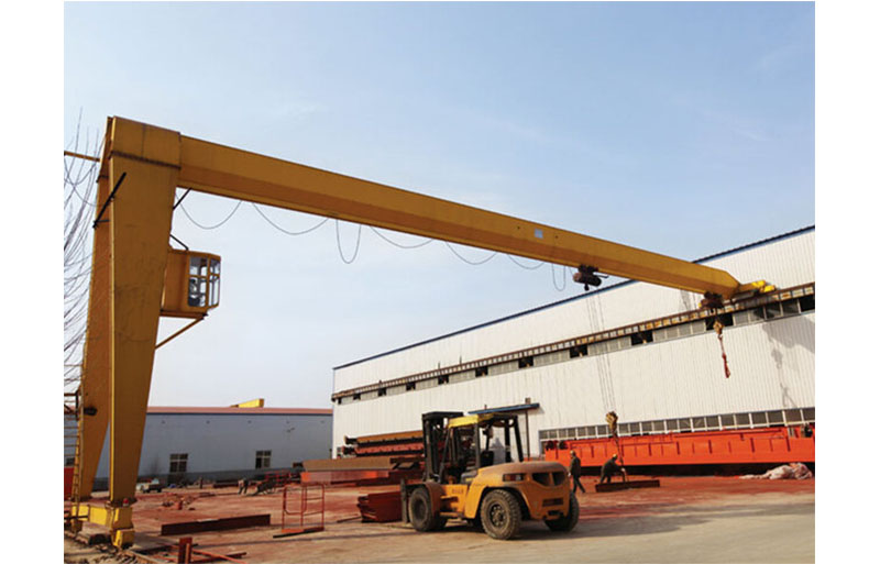 電動葫蘆半門式起重機 電動葫蘆半門式起重機與CD1、MD1等型號的電動葫蘆配套使用,是一種有軌運行的中小型起重機。本產品為一般用途起重機,多用于機械加工車間的物料搬運。下橫梁專用減速機可使起重機內側作業空間更大。