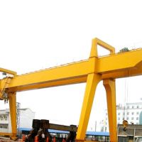 龍門吊通常用于室外貨場、料場貨和散貨的裝卸作業,具有場地利用率高、作業范圍大、適應面廣和通用性強等特點。它的金屬結構像門形框架,承載主梁下安裝兩條支腳,可以直接在地面的軌道上行走,主梁兩端可以具有外伸懸臂梁。