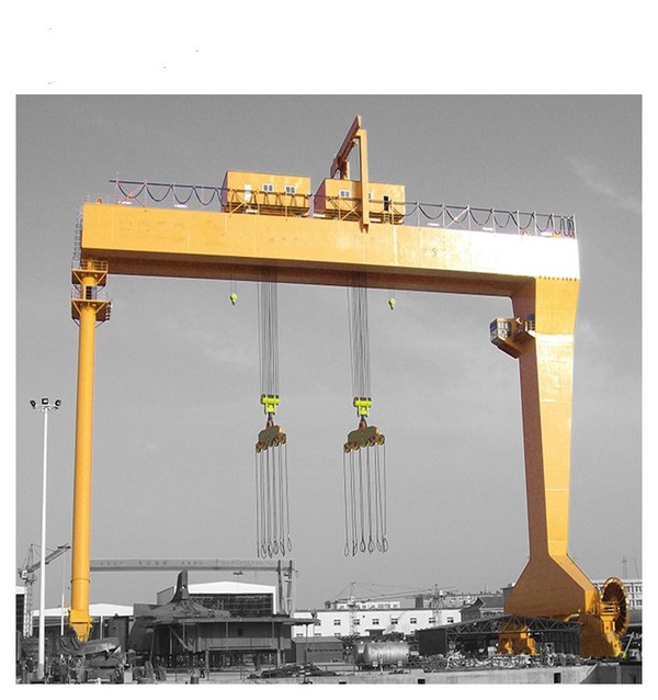 - 水電站龍門起重機:主要用來吊運和啟閉閘門,也可進行安裝作業。起重量達80~500噸,跨度較小,為8~16米;起升速度較低,為1~5米/分。