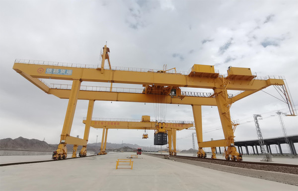 龍門吊是一種橋式起重機,其金屬結構像門形框架,承載主梁下安裝兩條支腳,可以直接在地面的軌道上行走,主梁兩端可以具有外伸懸臂梁。龍門吊具有場地利用率高、作業(yè)范圍大、適應面廣、通用性強等特點,在港口貨場得到廣泛使用。