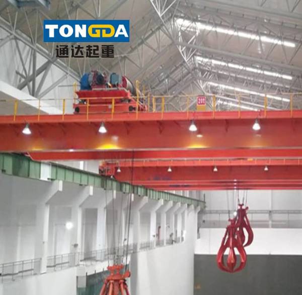 抓斗橋式起重機是一種橋式起重機,主要由箱形橋架、抓斗小車、大車運行機構、司機室和電氣控制系統組成。抓斗是取物裝置,能抓取散裝物料。抓斗橋式起重機有開閉機構和起升機構,抓斗以四根鋼絲繩分別懸掛在開閉機構和起升機構上。開閉機構驅動抓斗閉合,抓取物料,當斗口閉合后,立即開動起升機構,使四根鋼絲繩平均受載進行起升工作。卸料時只開動開閉機構,斗口隨即張開,傾斜物料。