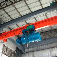 行吊橋式起重機是一種橫架于車間、倉庫和料場上空的起重設備,兩端坐落在高大的水泥柱或者金屬支架上,形狀似橋。橋式起重機的橋架沿鋪設在兩側高架上的軌道縱向運行,起重小車沿鋪設在橋架上的軌道橫向運行,構成一矩形的工作范圍,可以充分利用橋架下面的空間吊運物料,不受地面設備的阻礙。這種起重機廣泛用在室內外倉庫、廠房、碼頭和露天貯料場等處。