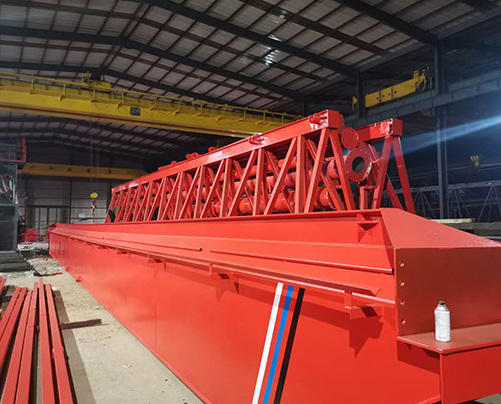 架橋機的工作原理是,通過起吊天車將預制好的橋梁構件吊裝到指定位置,然后利用橫移機構和縱移機構將架橋機移動到下一個工作位置,繼續進行吊裝和拼裝作業。在橋梁施工過程中,架橋機還需要進行各種支撐和固定工作,以確保橋梁的穩定性和安全性。