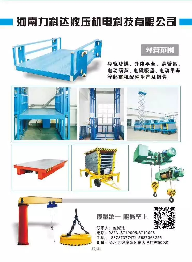 力科達(dá),主營(yíng)導(dǎo)軌貨梯,升降平臺(tái),電動(dòng)平車,懸臂吊,電磁吸盤(pán)等起重配件。