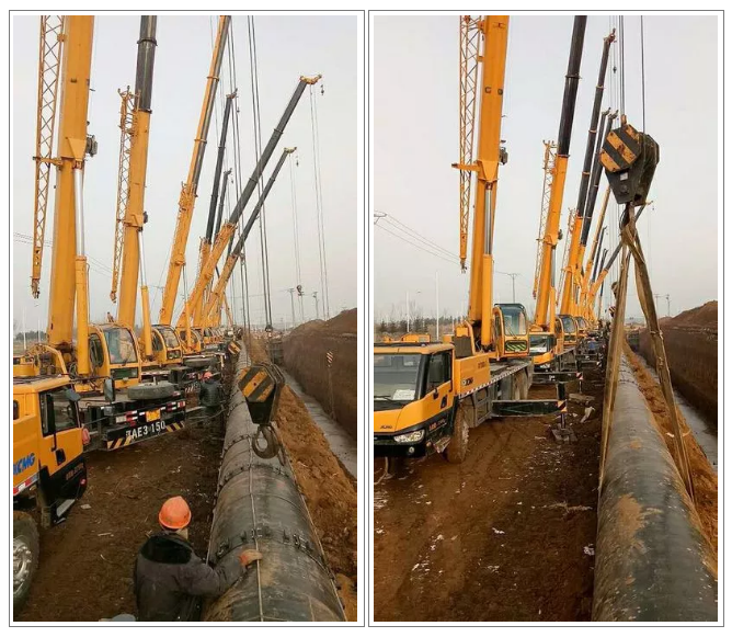 140米長的管道,10余臺(tái)徐工25噸起重機(jī)群集合力,每臺(tái)車吊裝4.5噸左右,伸出20多米大臂,半徑13米,助力沈陽渾南區(qū)燃?xì)夤艿拦こ探ㄔO(shè)。