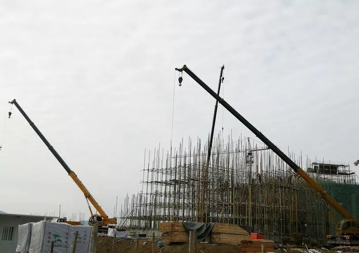 8臺(tái)徐工K系列起重機(jī)(QY25K5-1、QY20G等)舉起金色臂膀,打樁、安裝塔吊,以高效的施工效率完成吊裝作業(yè),助力石島鎮(zhèn)房地產(chǎn)建設(shè)。