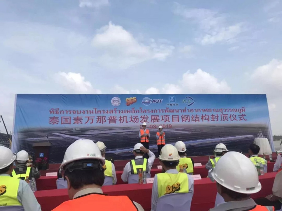 泰國素萬那普機場位于曼谷東郊,素萬那普機場擴建項目是泰國政府“東部經濟走廊”計劃中的重要項目,也是作為中資企業迄今在泰承建規模*的工程。該項目竣工投入使用后,將改善素萬那普老航站樓客流量壓力過大的狀況,推動經濟發展,惠及民眾。據中新社曼谷3月29日電,由中國建筑集團有限公司(簡稱中建)承建的泰國素萬那普機場擴建項目新候機樓29日舉行鋼結構封頂儀式。泰國機場管理公司、監理單位、中建泰國公司等相關方負責人攜團隊出席了封頂儀式,并對優秀建設團隊予以表彰。