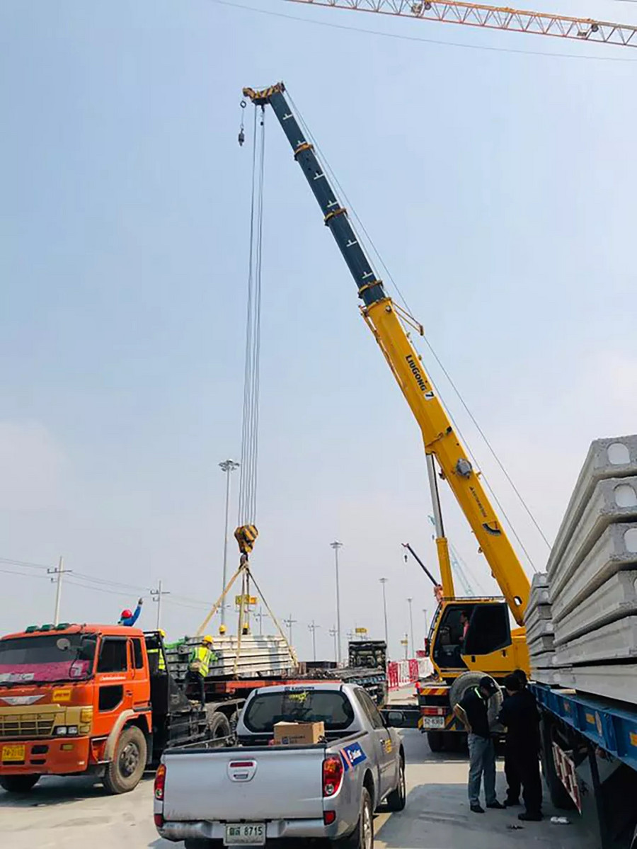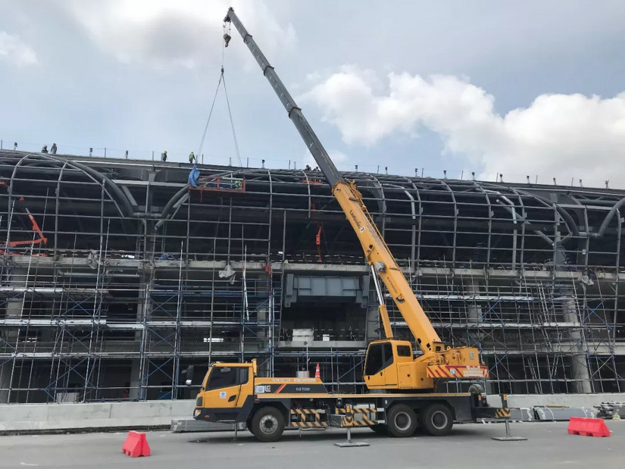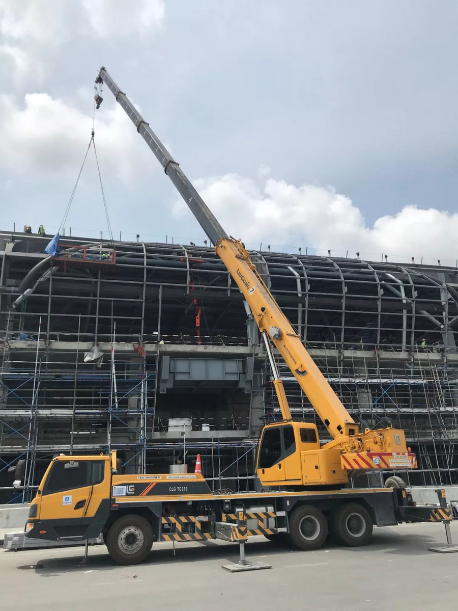 中國建筑集團有限公司作為中國建設企業的代表,對施工設備的要求極為嚴格,其多年來,一直與柳工保持著良好的合作關系,在多項大型工程中強強聯合。2016年,柳工TC250A4汽車起重機從眾多設備中脫穎而出,成功跟隨中國建筑投入到素萬那普機場2期工程——機場T2航站樓的建設中來,主要承擔吊裝預制板和候機樓地板鋪設工作。在高強度,高負荷的運轉下,柳工起重機憑借卓越的性能,超高的施工效率,零故障得到客戶的高度贊揚,始終是該項目施工的吊裝主力。