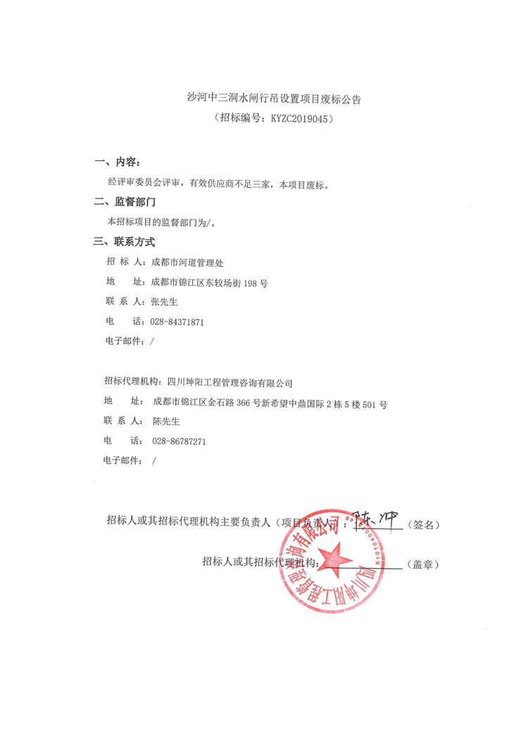 沙河中三洞水閘行吊設(shè)置項(xiàng)目廢標(biāo)公告