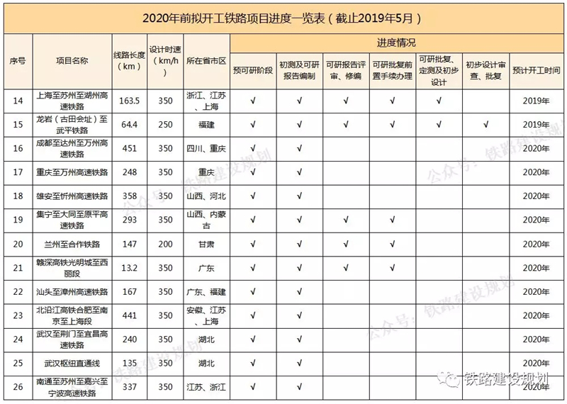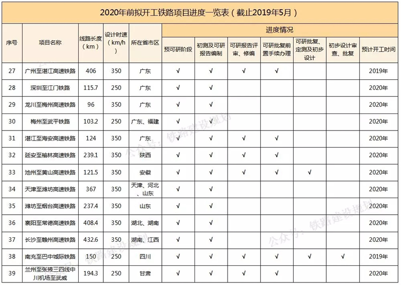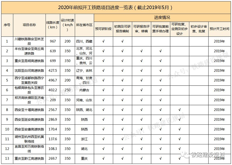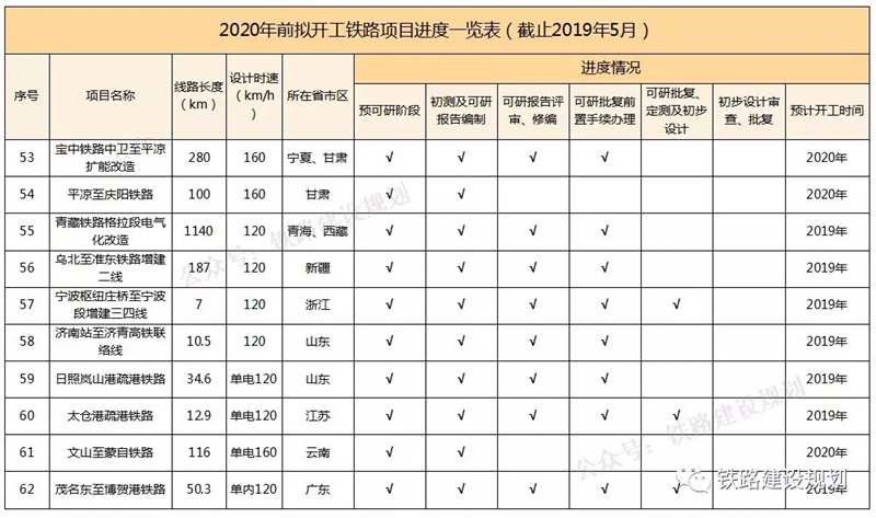 移動版:2020年前鐵路計劃開工項目一覽表!