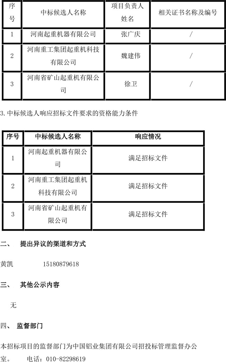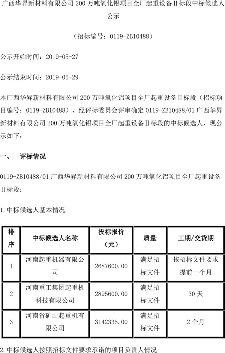 移動版:廣西華昇新材料有限公司200萬噸氧化鋁項目全廠起重設(shè)備Ⅱ標(biāo)段中標(biāo)候選人公示