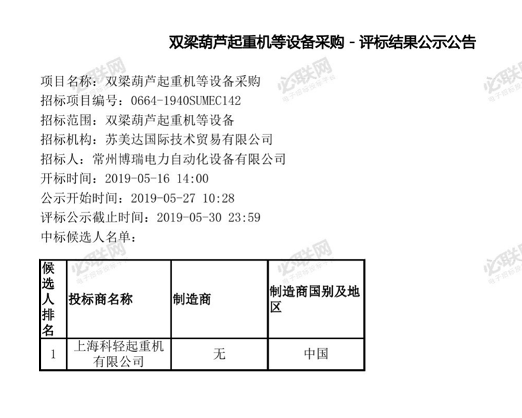 移動(dòng)版:雙梁葫蘆起重機(jī)等設(shè)備采購(gòu)中標(biāo)公告