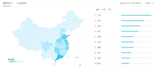 在百度社區(qū)團(tuán)購(gòu)搜索指數(shù)榜上,河南超越湖南位列第五。