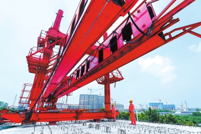 7月13日,鄭許市域鐵路施工現(xiàn)場,工人正在進行架梁作業(yè)。鄭許市域鐵路是中原城市群軌道交通網(wǎng)的骨干路線,連接了新鄭國際機場換乘中心和許昌東站,計劃于2020年年底試運營。