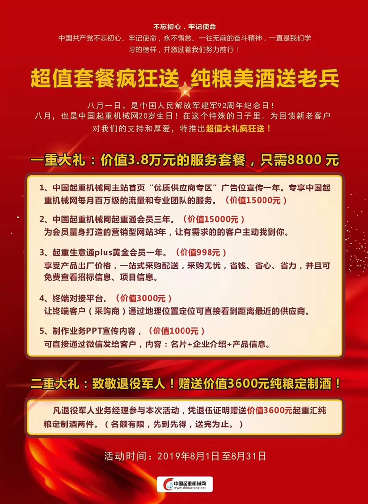 官宣!《起重匯采購指南》總第20期圓滿收官!感謝新老客戶的支持,感謝全體同事的付出,感謝在最美的時光我們彼此相遇! 因為相信,所有一切都變得更有意義! 2020抱團抗風浪,攜手贏未來,風雨同舟,我們同行! 好產品推廣聯系:13683732114好...[詳情]